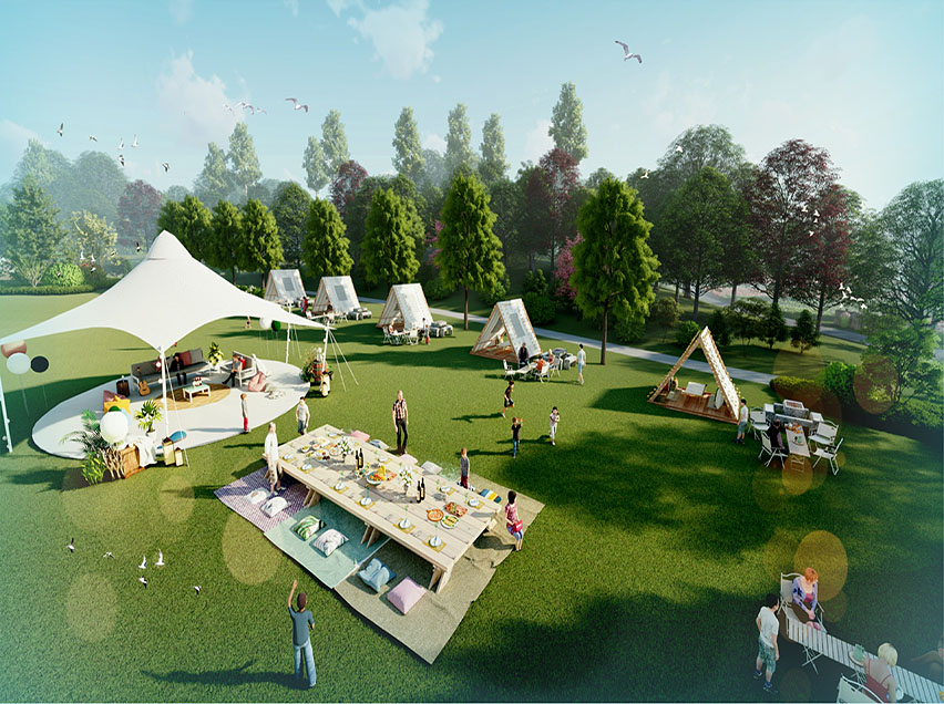 以旅游文化为特质立足于市场需求,打造集研学拓展、旅游休闲、运动体验、野奢露营、亲子娱乐、园艺花艺技能培训等功能于一体的新型旅游度假综合体项目。