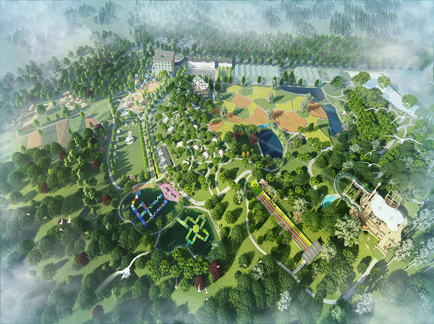 1.项目主要依托山、湖、林、田构成的自然景观,利用原有路网点状布局休闲游乐项目,通过引进云娱综合体、钻石塔、丛林穿越、萌宠51漫画、劳动实践基地等20余个游乐项目。