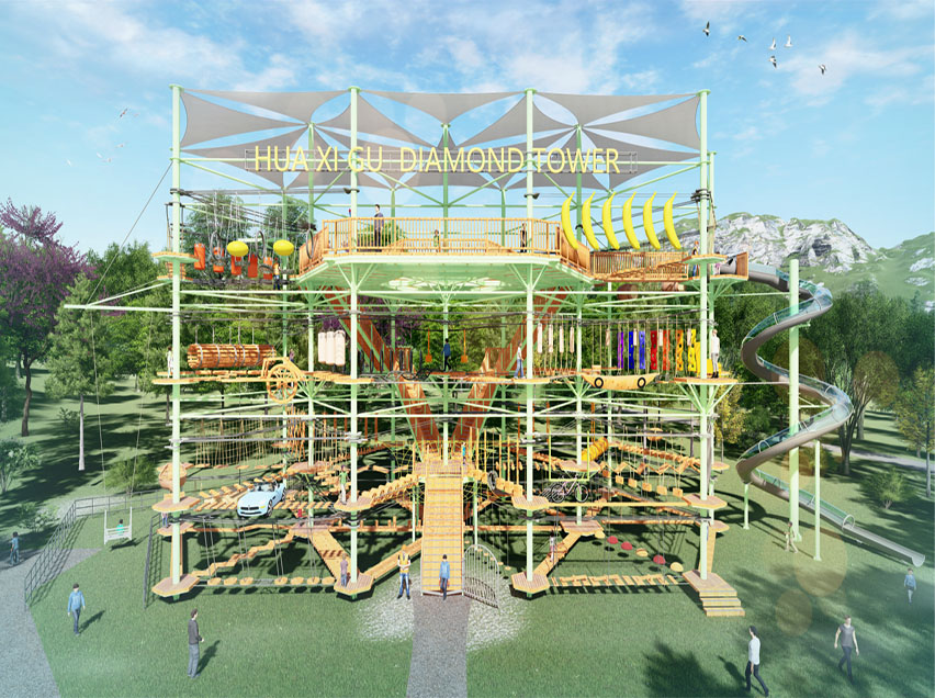 钻石塔是一个立体探险娱乐综合体,景区地标性运动游乐项目。包含尖叫滑梯、低空蹦极等,能满足150个游客同时进行冒险体验,适合热爱挑战极限的人群,也可以实现企业团队建设、领导技能培训、凝聚团队,通过丰富的体验带给游客一个全天的刺激享受。被誉为运动游乐之王。
